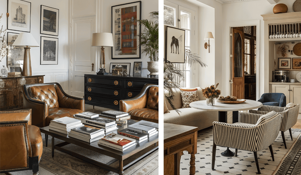 Modern eclectic home interior design is a blend of vintage maximalist decor with high-end refinement. Vintage furniture is the heart of an eclectic maximalist home. It’s all about layering vintage finds with modern and luxurious elements to create a space that feels one-of-a-kind.