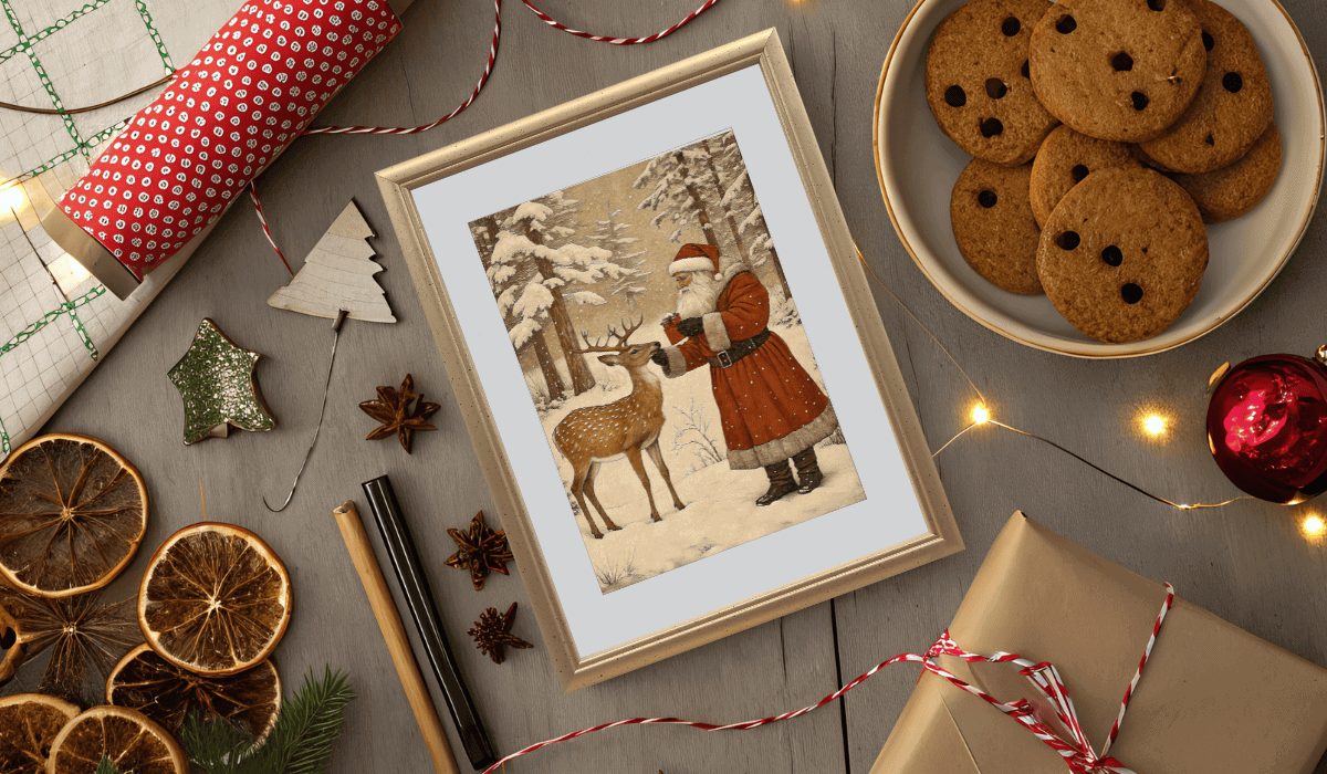 There’s a reason vintage Christmas art has been popping up everywhere, it’s timeless, cozy, and packed with personality. Whether you’re drawn to whimsical Santa illustrations, snowy village scenes, or delicate holly motifs, vintage Christmas prints bring a sense of warmth and nostalgia that modern designs just can’t match.